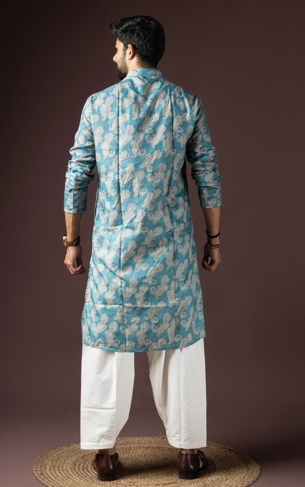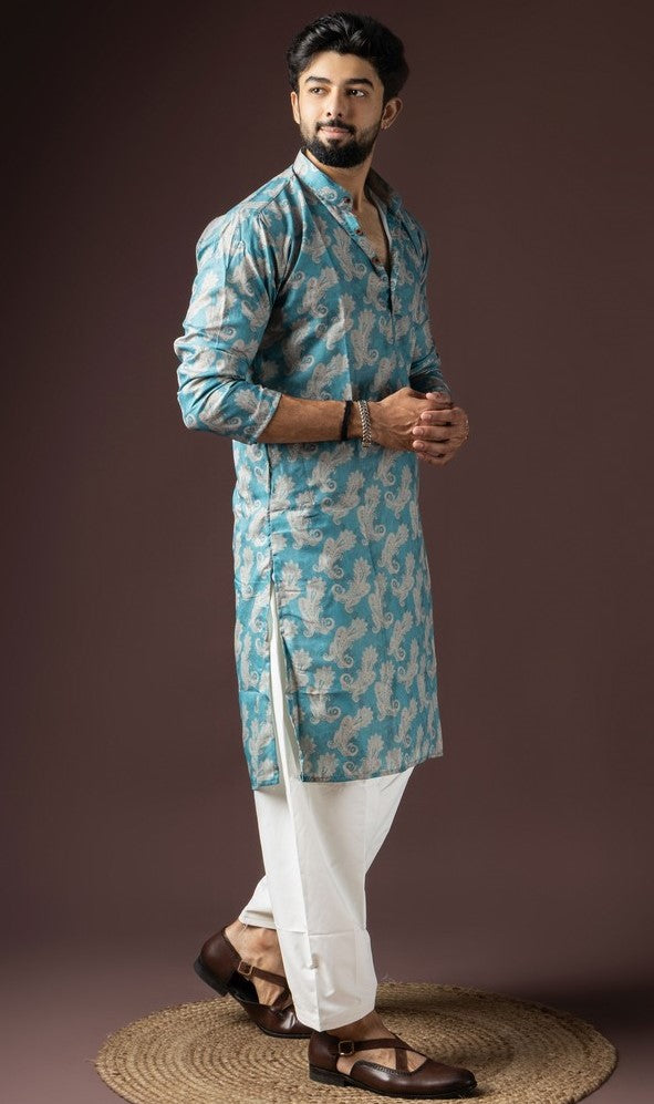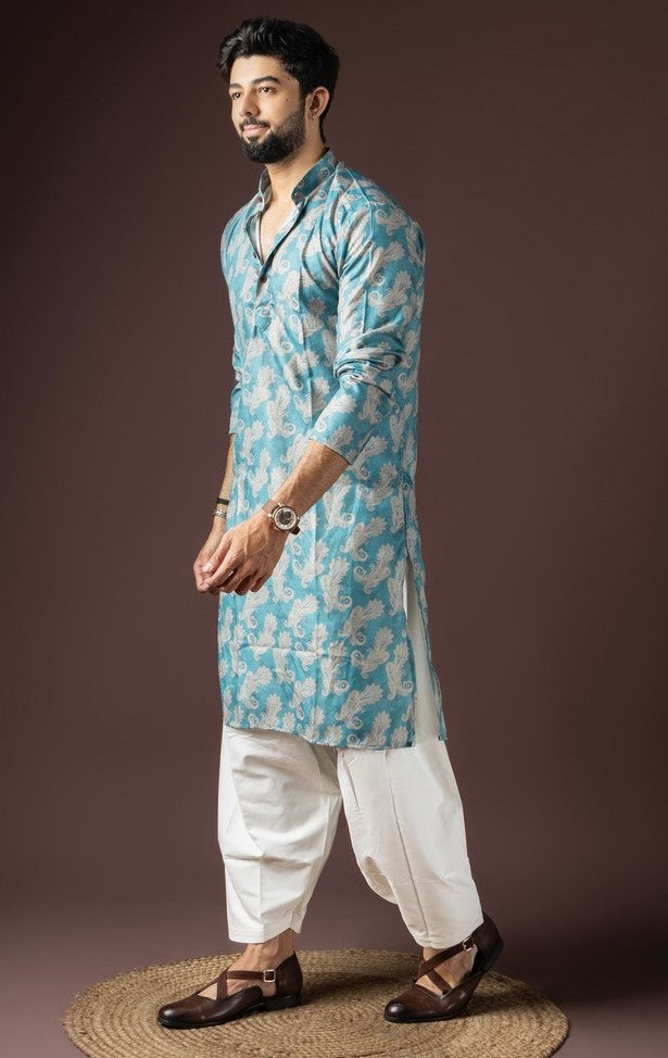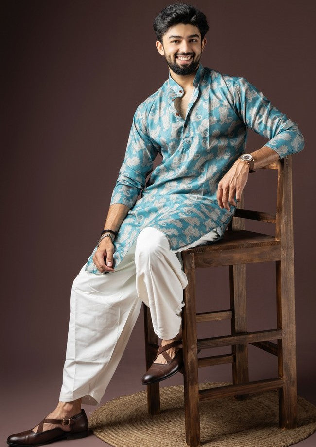 Amazing Blue Color Cotton Fabric Kurta Pajama