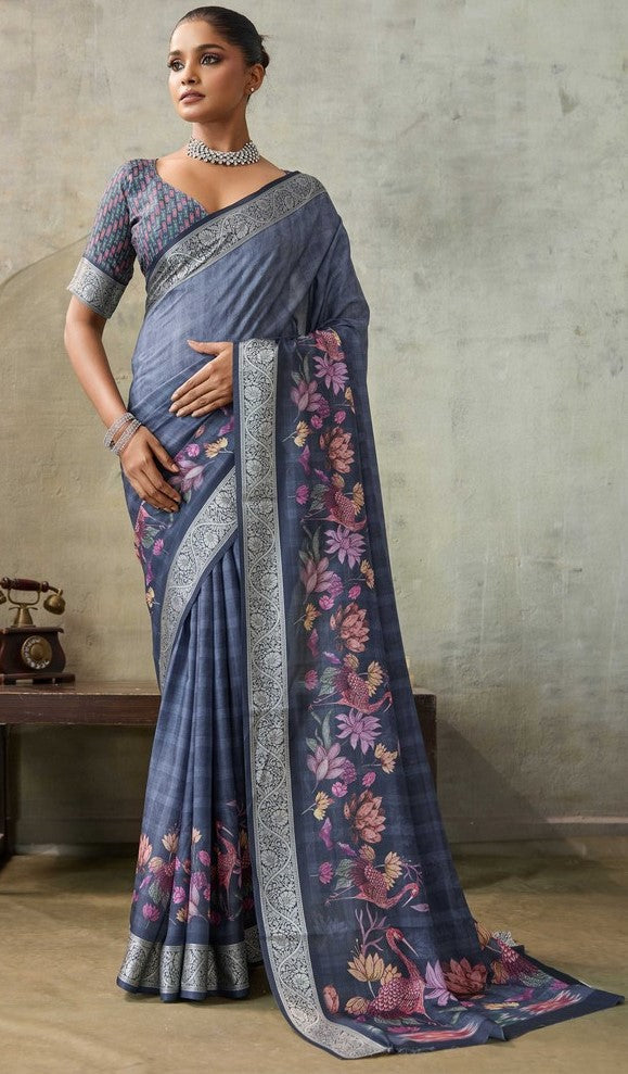 | Color | Saree Color - Blue, Blouse Color - Blue |