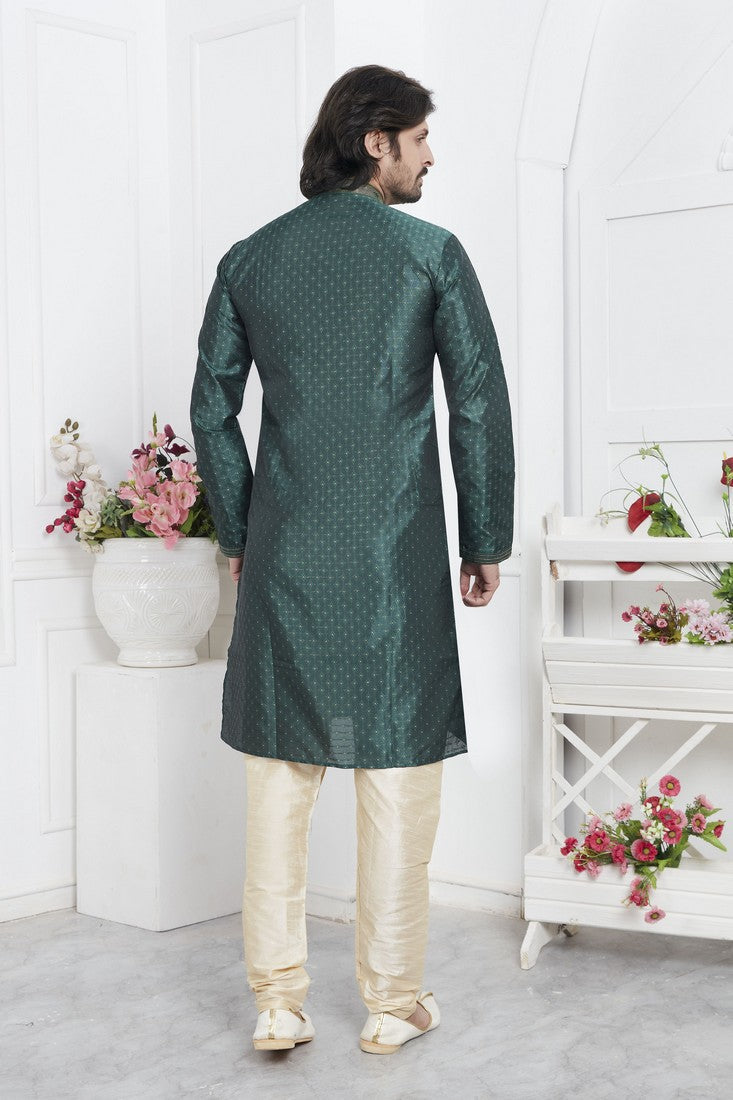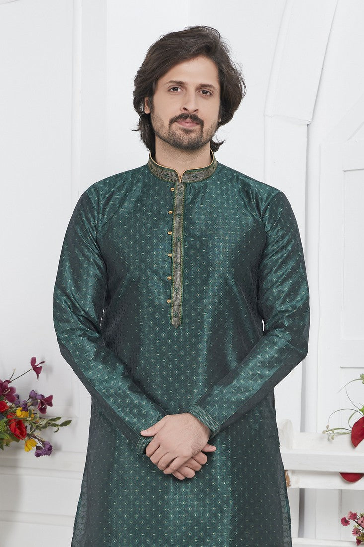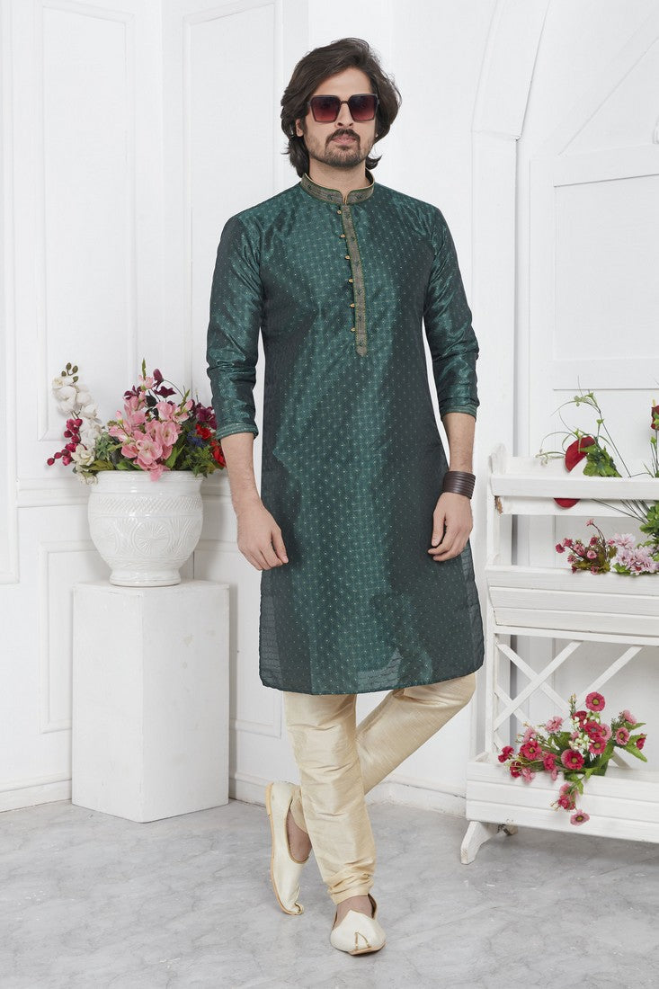 Amazing Green Color Jacquard Fabric Kurta Pajama