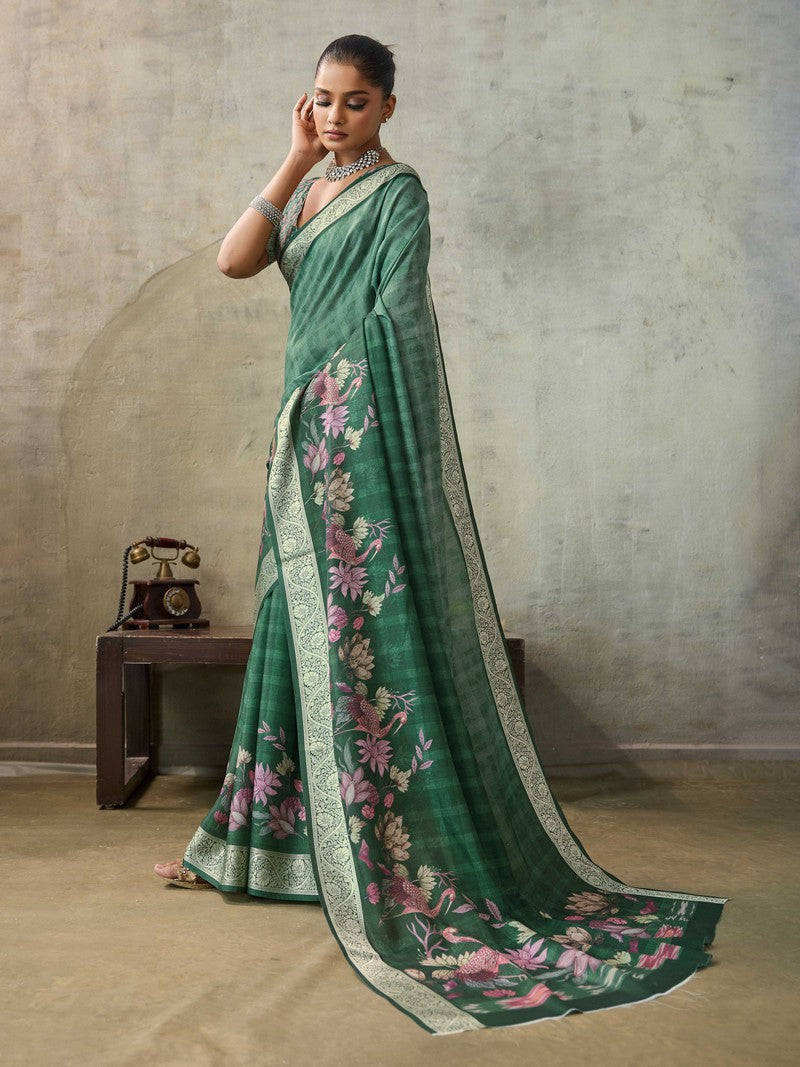 Attractive These Party Wear Saree in Fine Colored.These Saree Are Crepe Viscose And Blouse is Fabricated On Crepe Viscose Pair.Its Beautified With Woven Border Designer, Digital Printed.