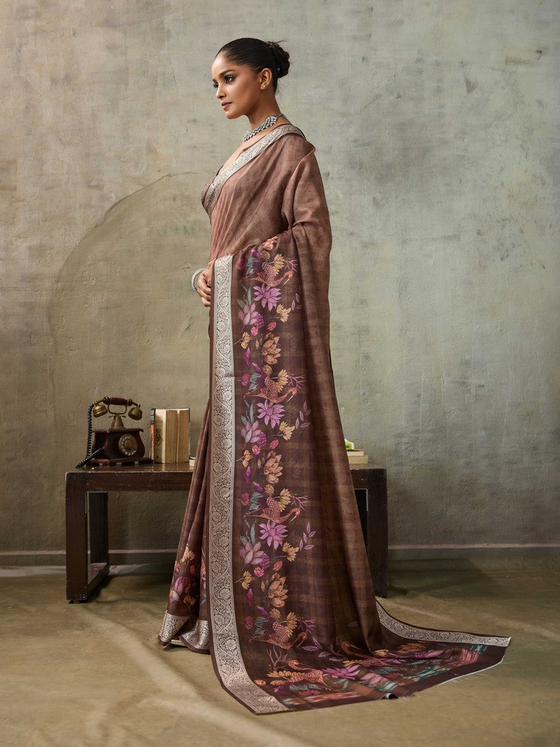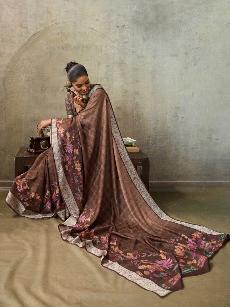 Attractive These Party Wear Saree in Fine Colored.These Saree Are Crepe Viscose And Blouse is Fabricated On Crepe Viscose Pair.Its Beautified With Woven Border Designer, Digital Printed.