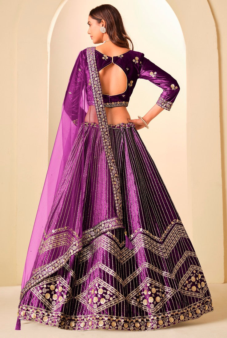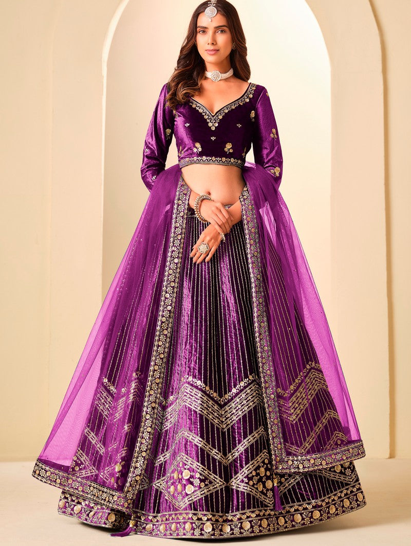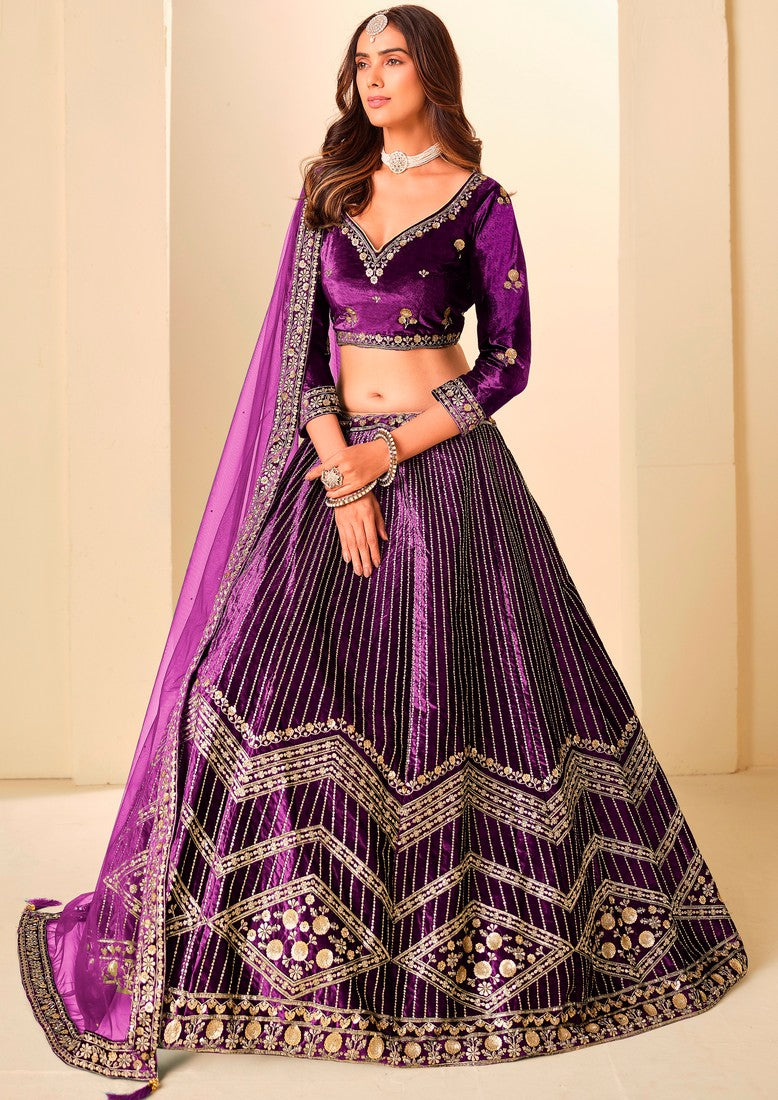 Amazing Purple Color Velvet Fabric Partywear Lehenga
