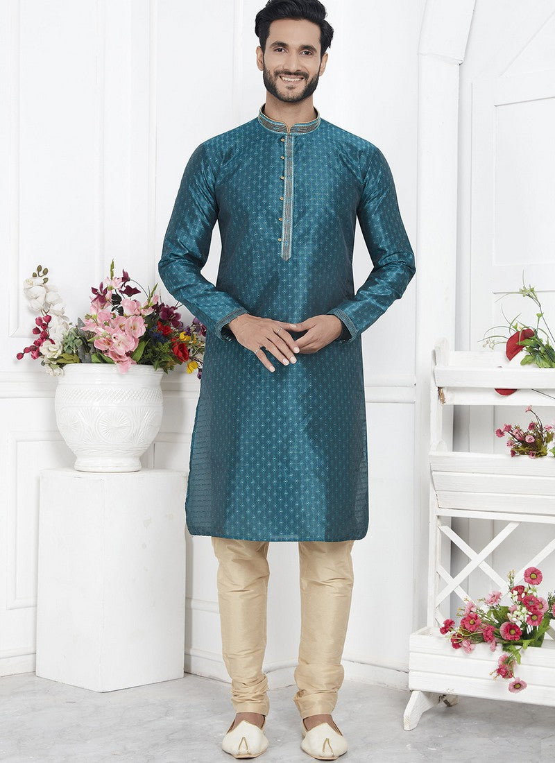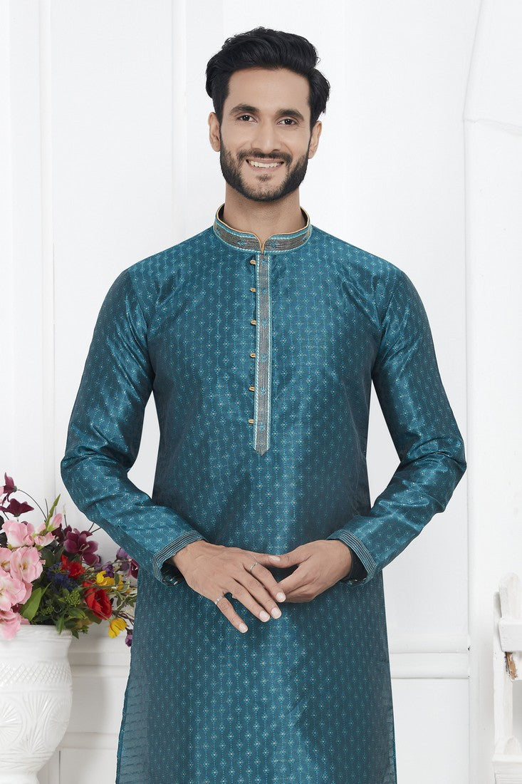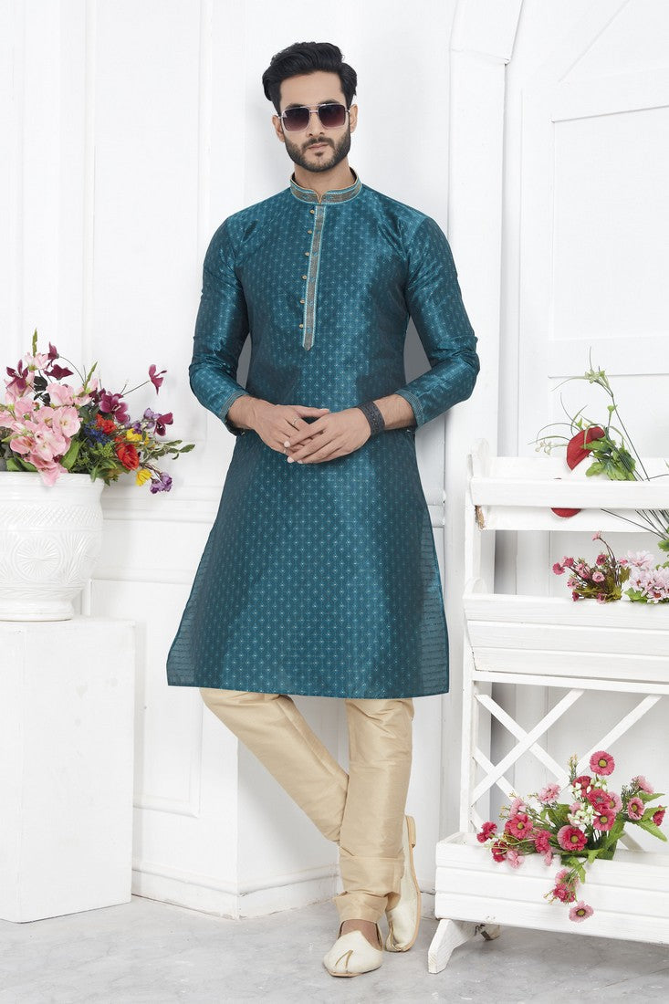 Amazing Teal Color Jacquard Fabric Kurta Pajama