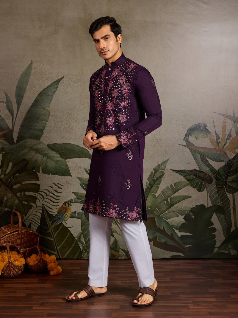 Amazing Voilet Color Viscose Fabric Mens Kurta
