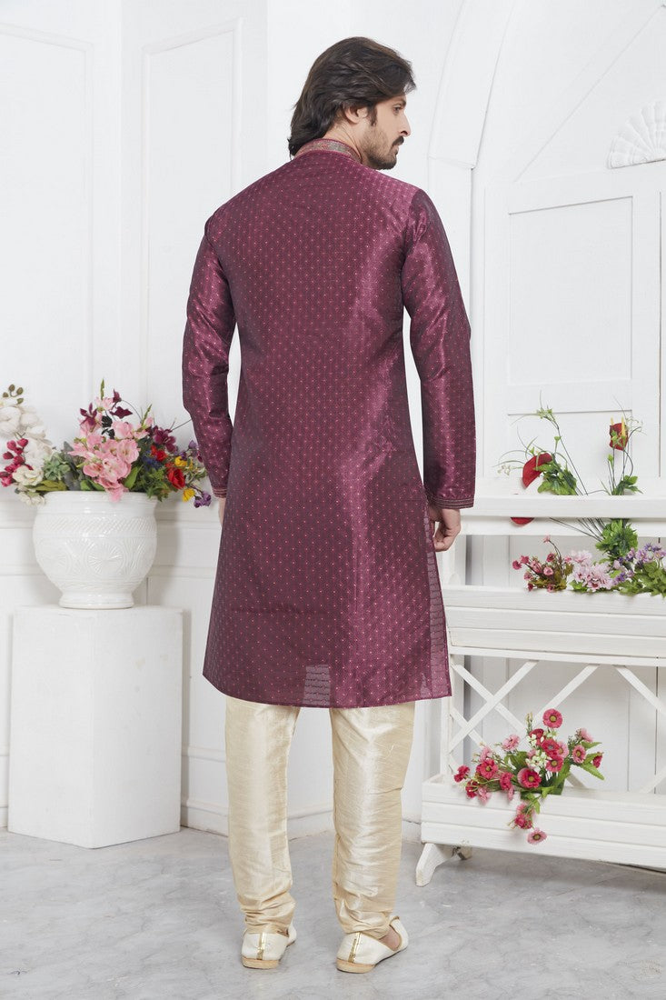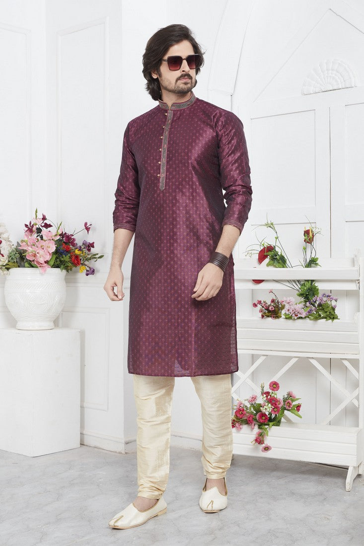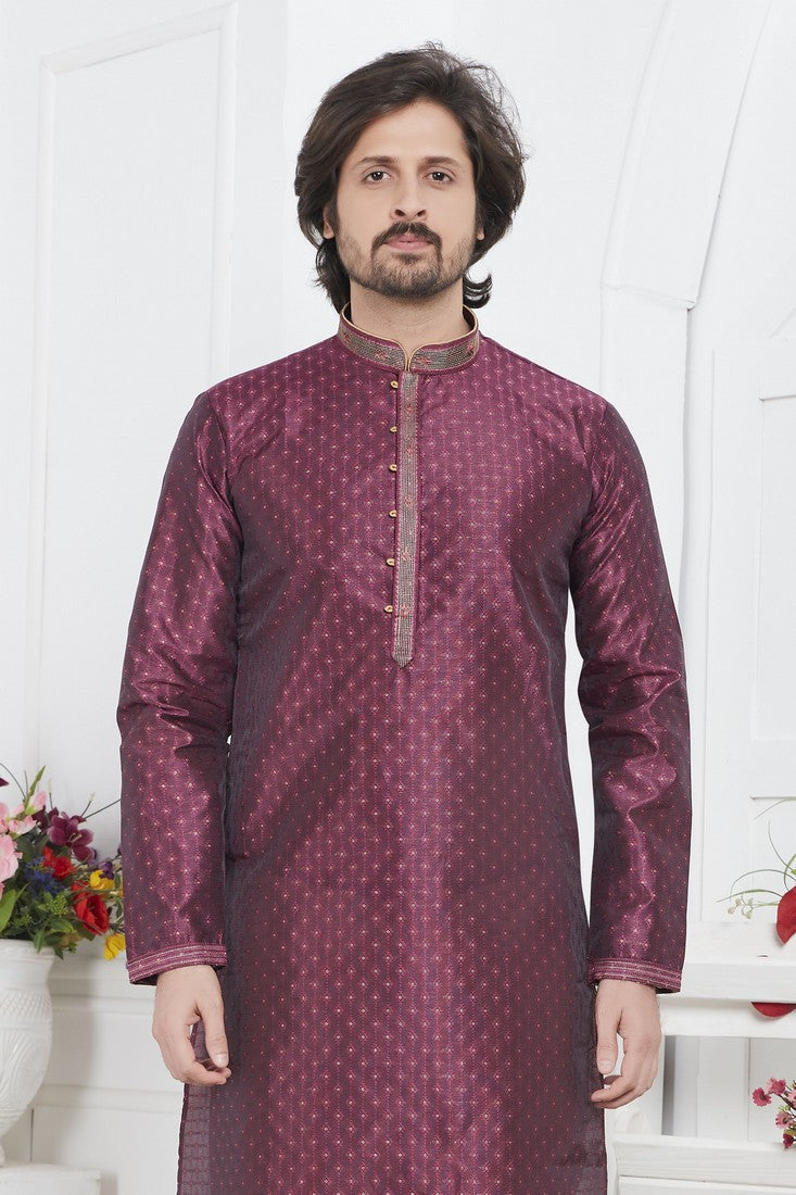 Amazing Wine Color Jacquard Fabric Kurta Pajama