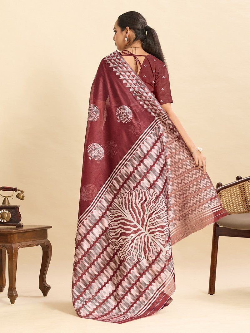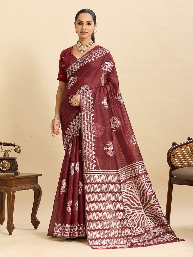 Beautiful Maroon Color Silk Fabric Casual Saree
