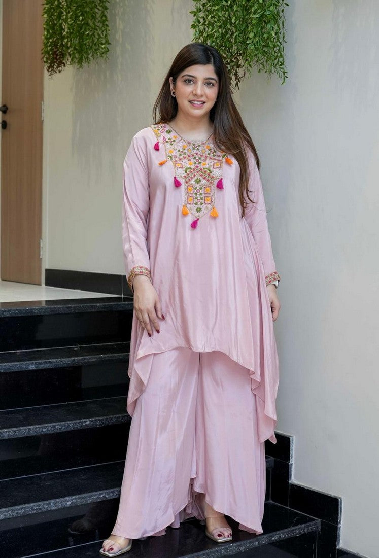 Beautiful Pink Color Crepe Fabric Designer Suit
