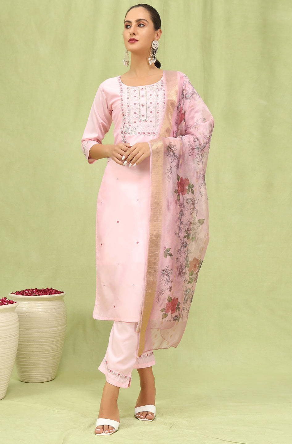 | Color | Top Color - Pink, Bottom Color - Pink, Dupatta Color - Pink |