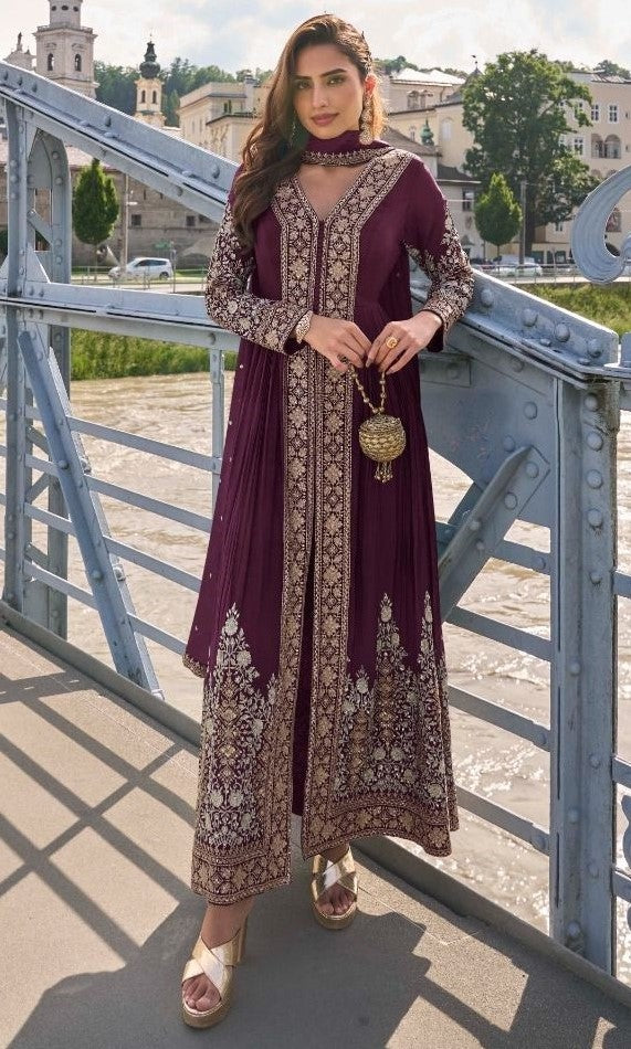 Beautiful Voilet Color Chinon Fabric Partywear Suit