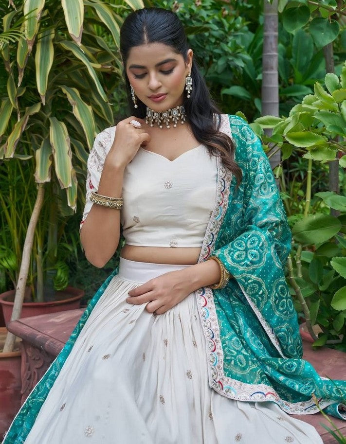 Beautiful White Color Tissue Fabric Readymade Party Wear Lehenga