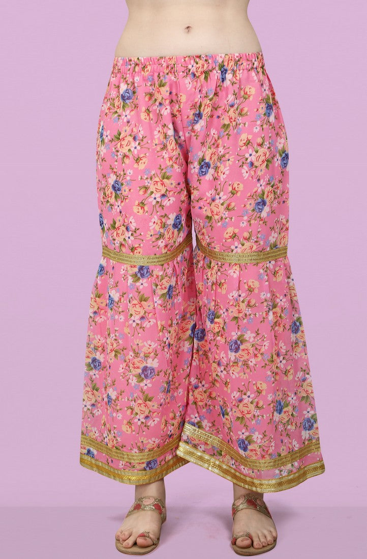 Dazzling Peach Color Georgette Fabric Sharara Suit