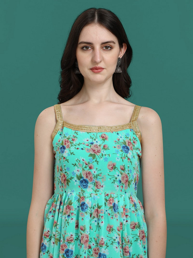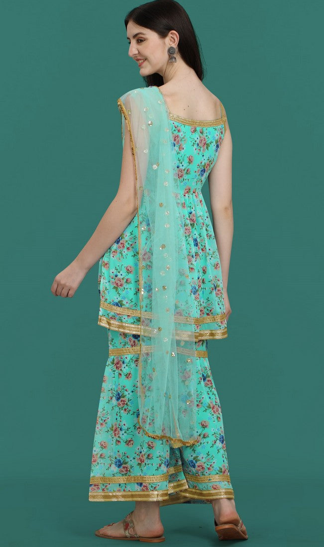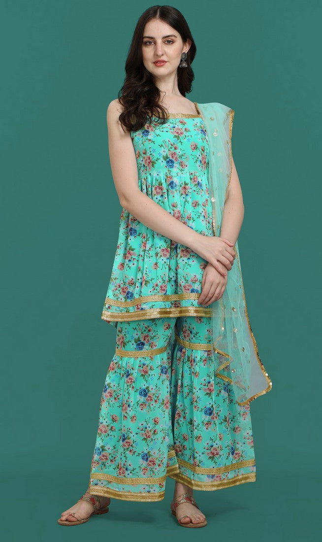 Dazzling Turquoise Color Georgette Fabric Sharara Suit