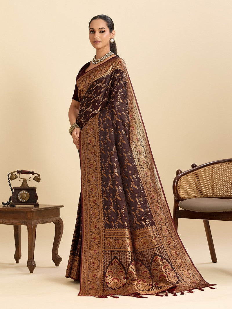 Dazzling Wine Color Satin Fabric Partywear Saree