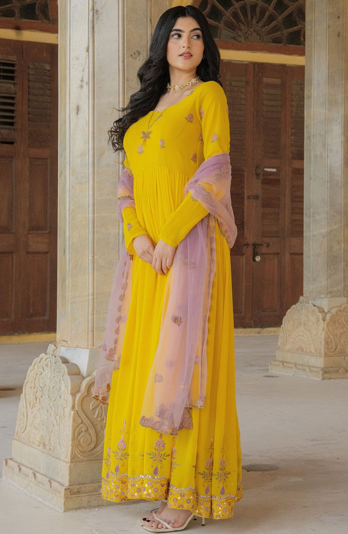 | Color | Top Color - Yellow,Dupatta Color - Pink |