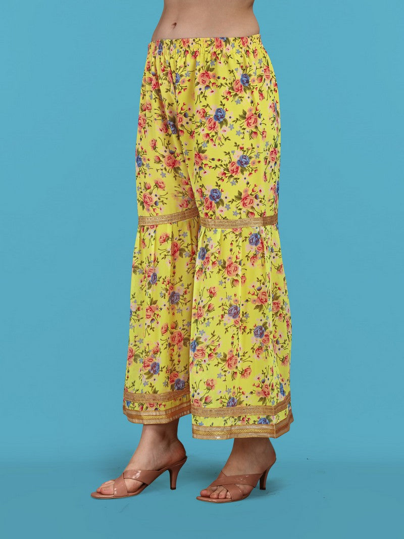 Dazzling Yellow Color Georgette Fabric Sharara Suit