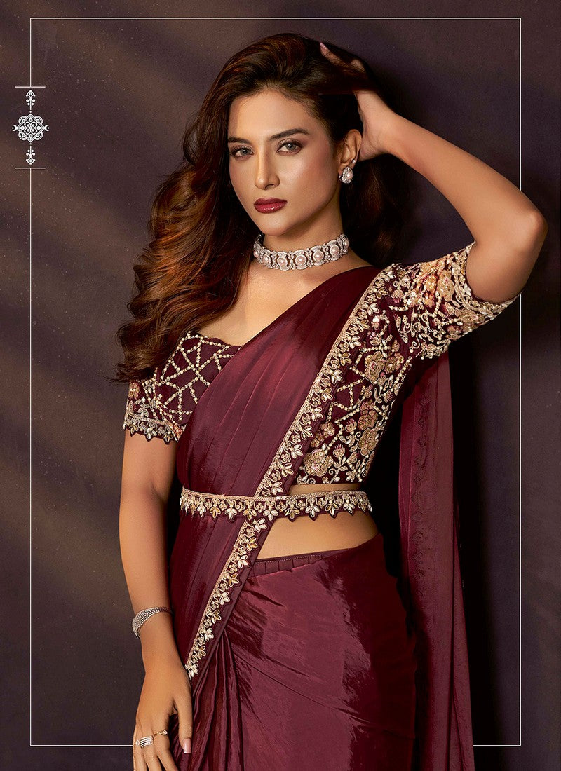 Lovely Maroon Color Silk Fabric Readymade Saree