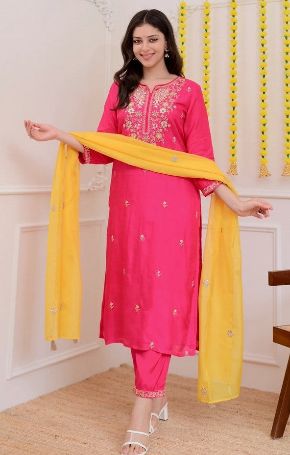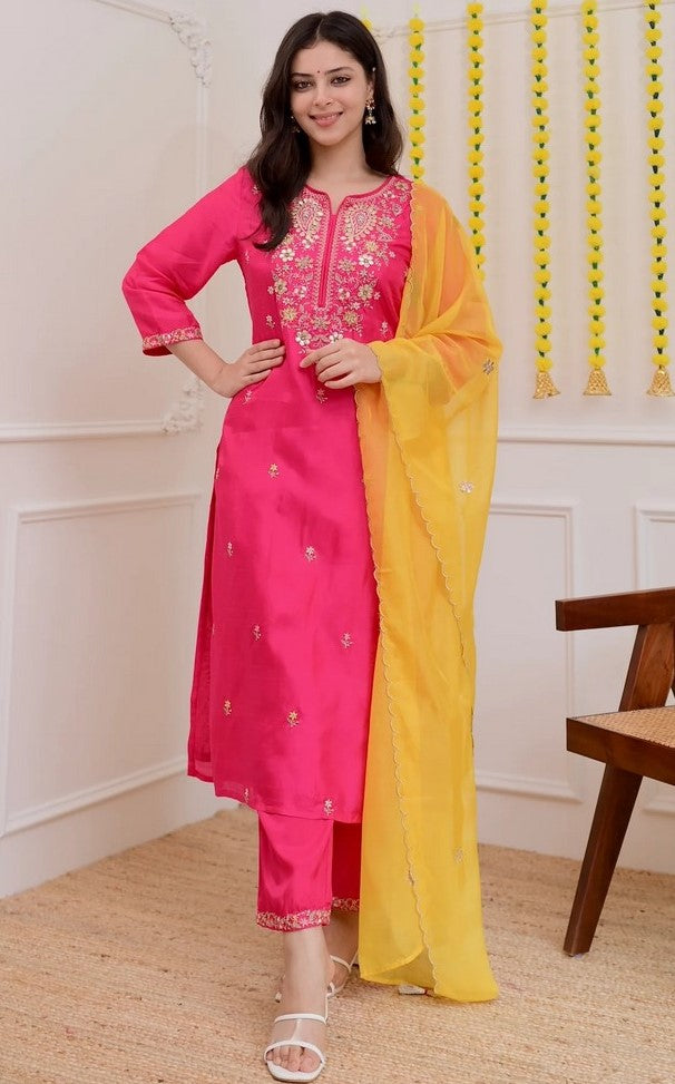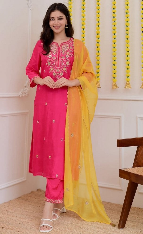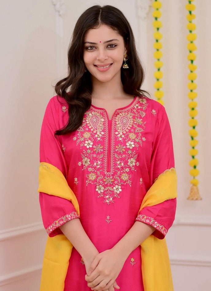 | Color | Top Color - Pink, Bottom Color - Pink, Dupatta Color - Mustard |