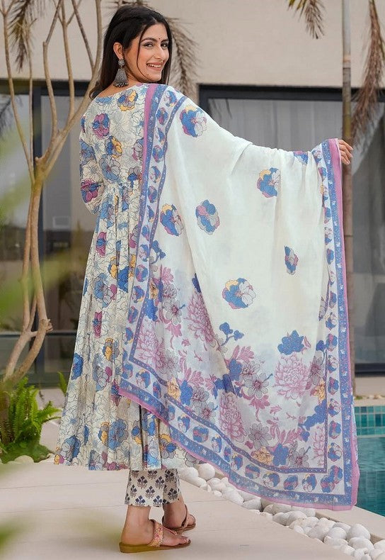 Tasteful White Color Muslin Fabric Designer Suit